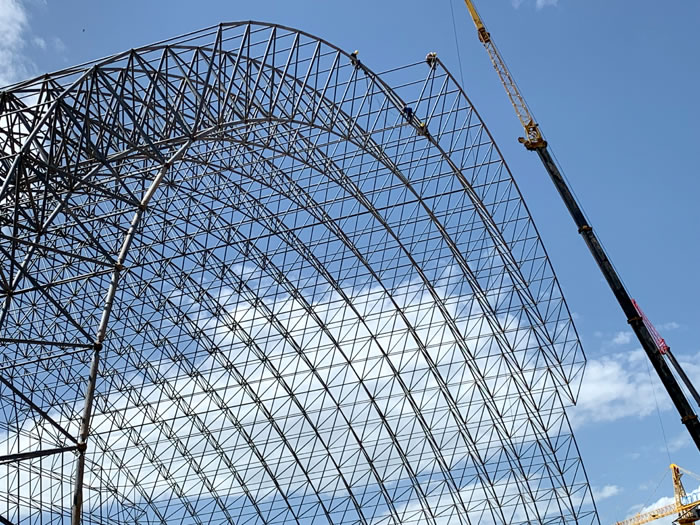 (2)网架加工前应对现场尺寸进行复测,确认无误后方可进行加工、安装;网架制作、运输、安装应遵守《空间网格结构技术规程》JGJ7-2010、《钢网架天津螺栓球节点》JG/T 10-2009、《钢网架天津螺栓球节点用高强度螺栓》 GB/T 16939-2016、《天津钢结构天津工程天津施工规范》 GB50755-2012、《天津钢结构天津工程天津施工质量验收标准》 GB50205-2020。